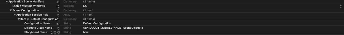 | Info.plist -> Application Scene Manifest 삭제 |