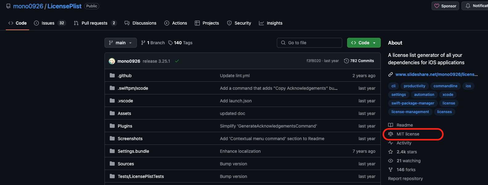 대부분의 오픈소스 라이브러리는 깃허브에 들어가보면 우측에 라이선스가 명시되어있고 내용도 확인할 수 있다.